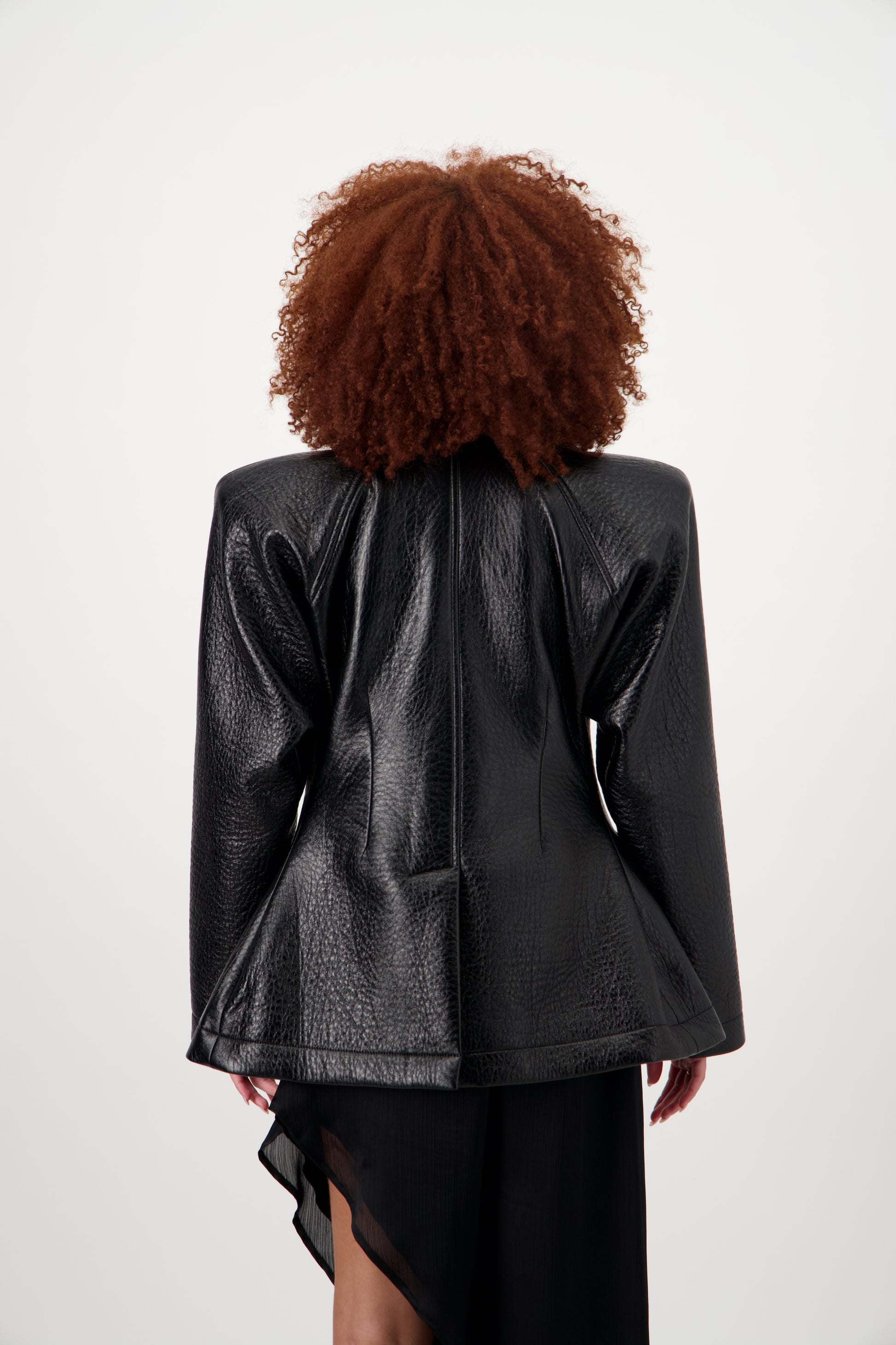 Avec ses lignes architecturales et ses épaules structurées, cette veste incarne une allure audacieuse et contemporaine. Confectionnée dans une matière texturée effet cuir, elle est rehaussée d’une ceinture ton sur ton qui souligne la taille pour une silhouette affirmée. Polyvalente, elle se porte aussi bien comme une robe courte que comme un manteau, ajoutant une touche de caractère à chaque tenue.